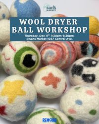 Craft and learn as you create 3 personalized wool dryer balls to take home or gift this holiday season!