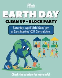 Join our annual Earth Day Clean Up and hang out after for our block party with environmental organizations, non-profits, giveaways, raffle prizes + more! This is a FREE, family friendly event to celebrate Earth Day, do our part to keep her clean and have fun while doing it!